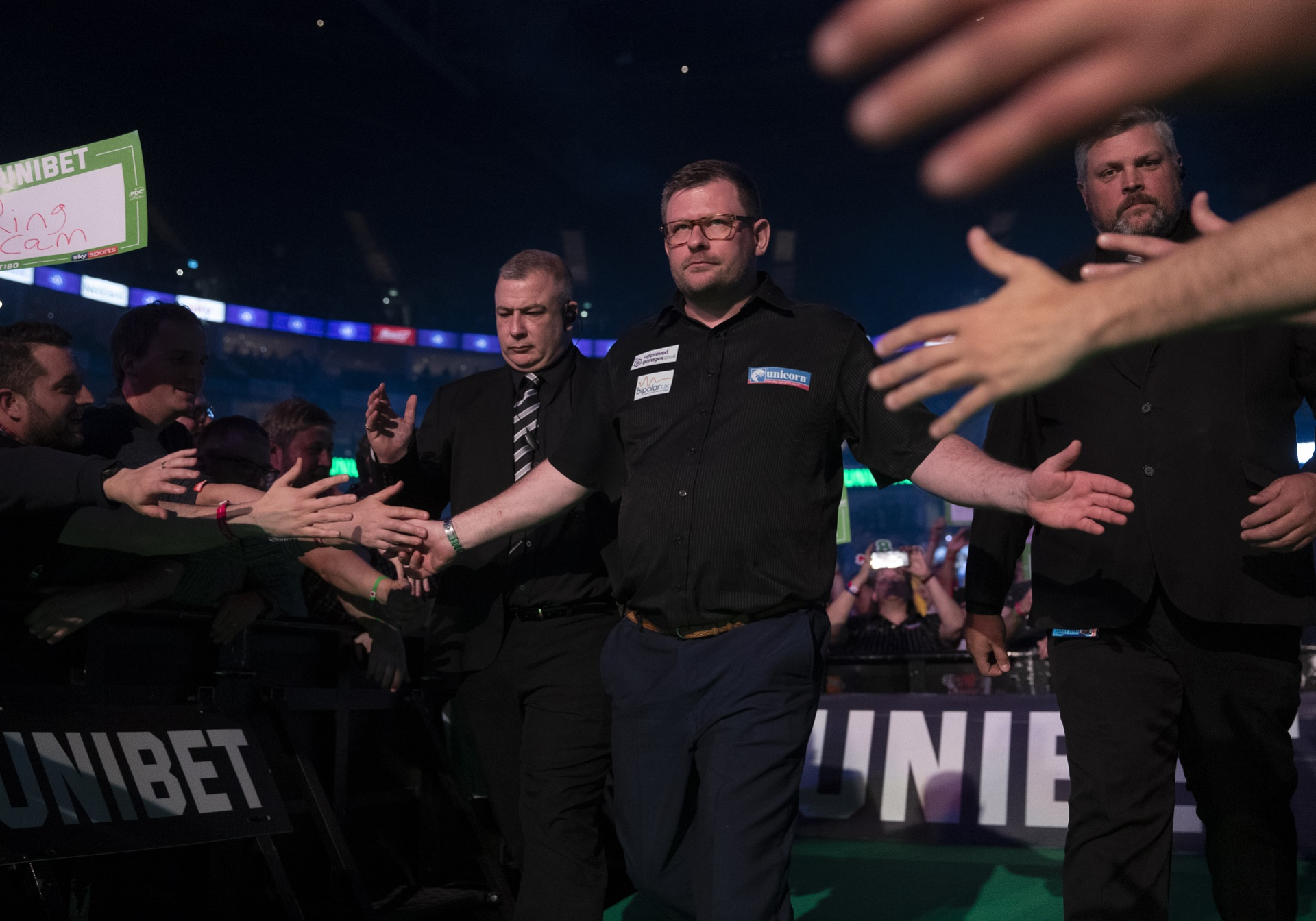 Rob Cross enters The O2 for his semi-final with James Wade (Lawrence Lustig, PDC)