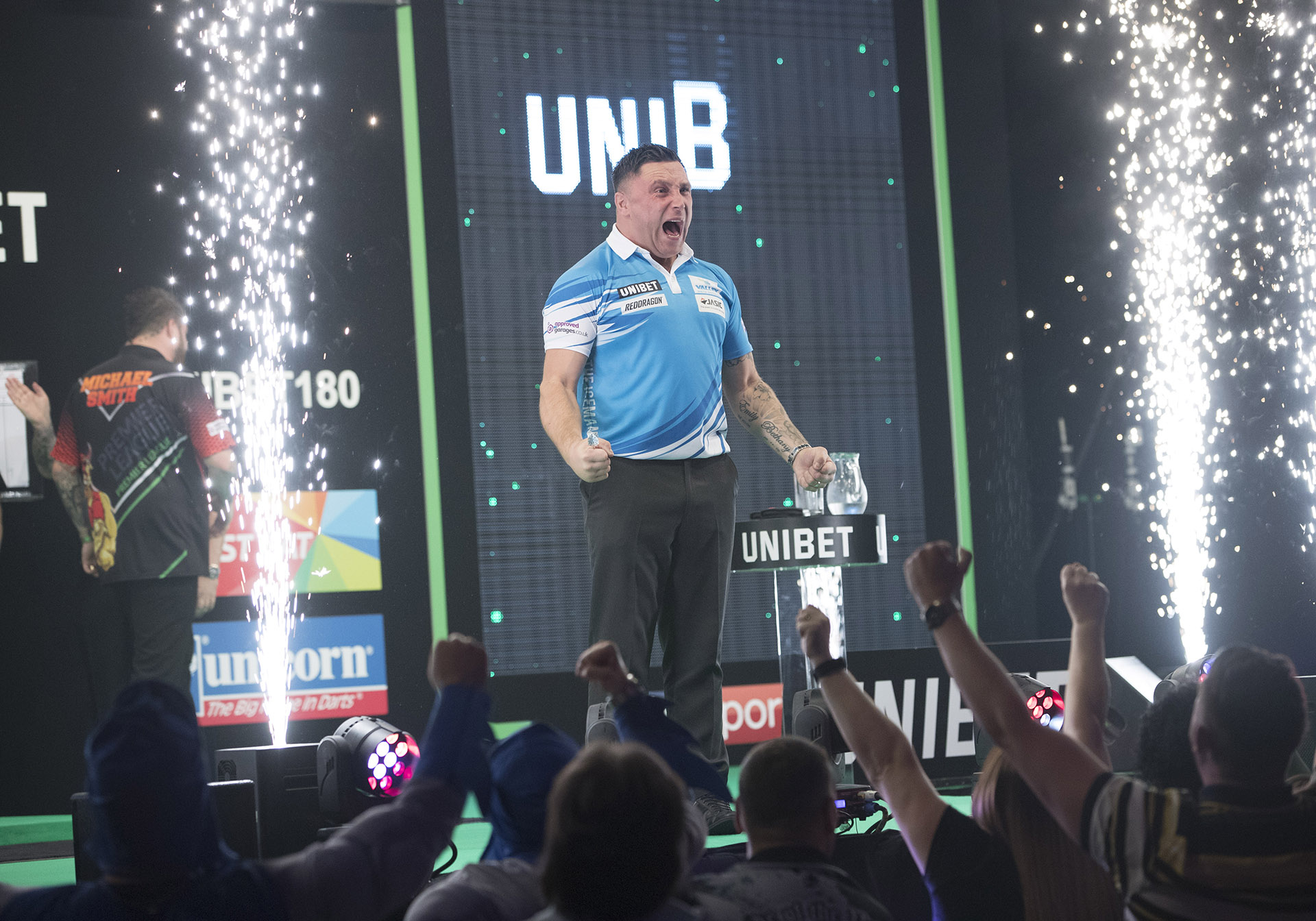 Gerwyn Price delighted his Welsh crowd with an 8-5 win over Michael Smith.