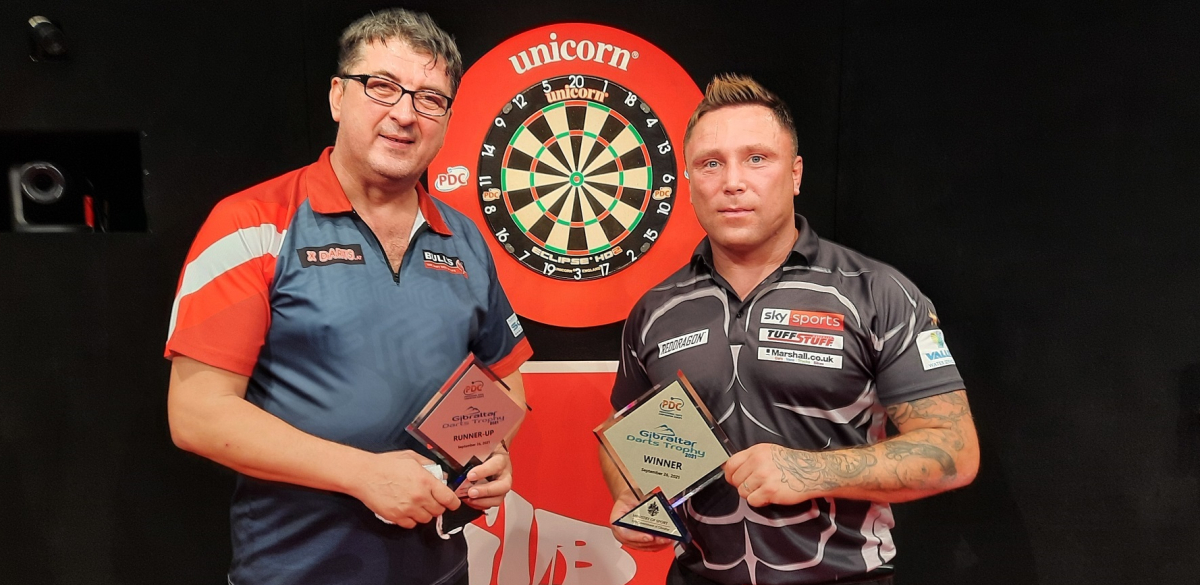 Gerwyn Price completed a European Tour double with a fine success in the Gibraltar Darts Trophy, emphatically defeating Mensur Suljovic 8-0 in Sunday's final.