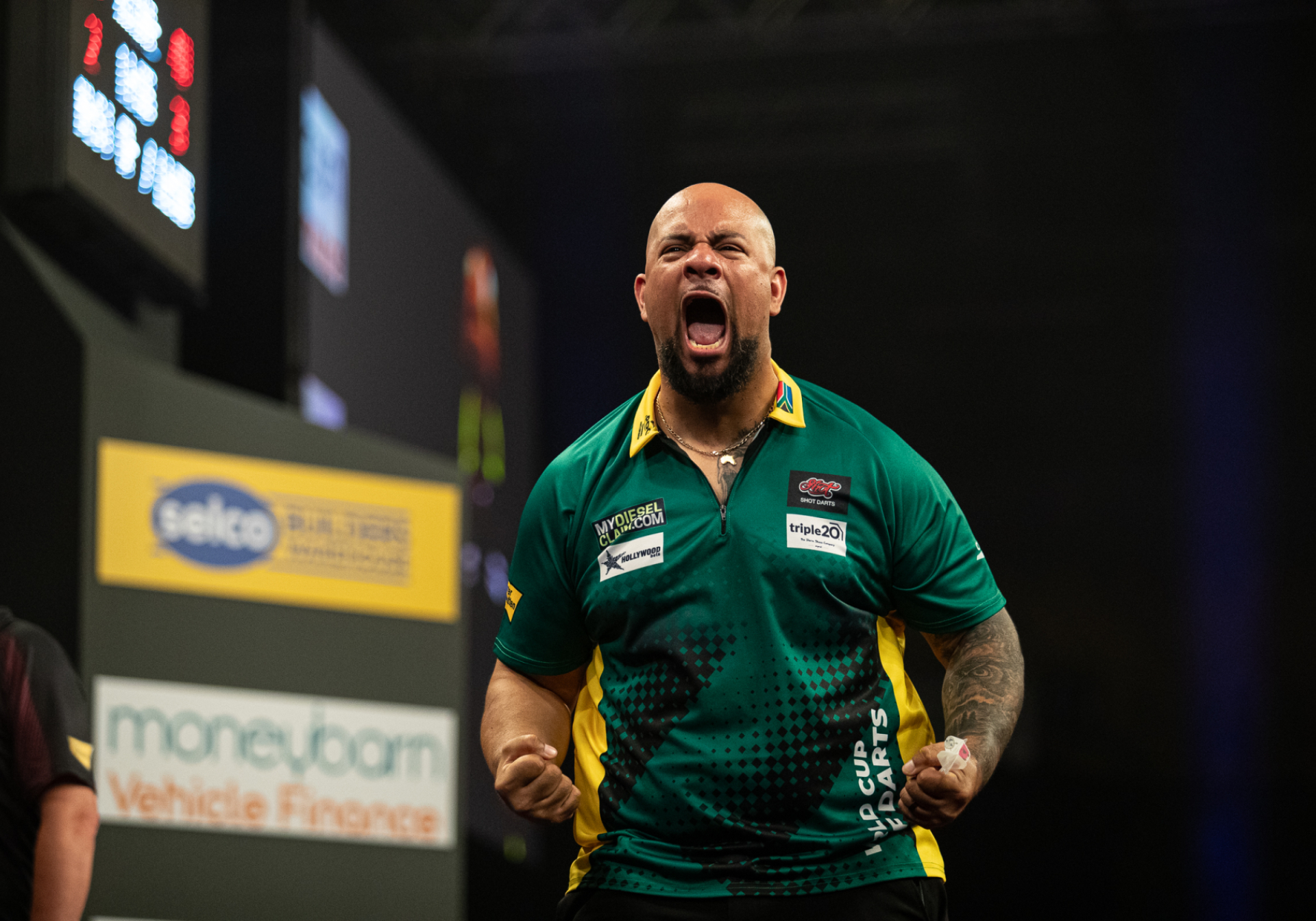 Australia’s Damon Heta and Simon Whitlock began their defence of the My Diesel Claim World Cup of Darts with a whitewash win over debutants Guyana, as Denmark's Benjamin Reus stole the show on a bumper opening night in Frankfurt.