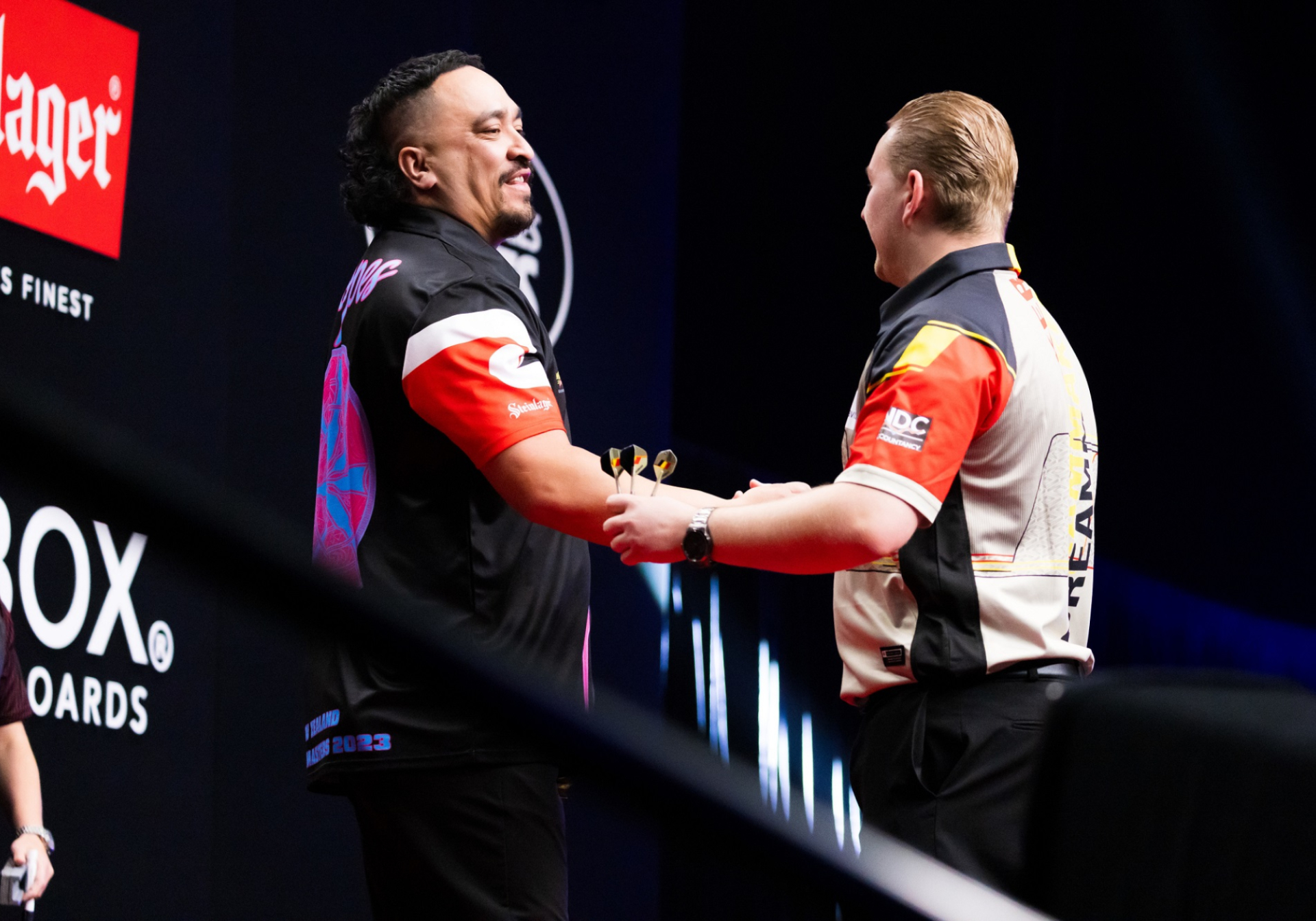 Haupai Puha and big-stage debutant Jonny Tata delighted the Hamilton crowd at the 2023 NZ Darts Masters with victories over Dimitri Van den Bergh and Peter Wright as the World Series of Darts event began on Friday.