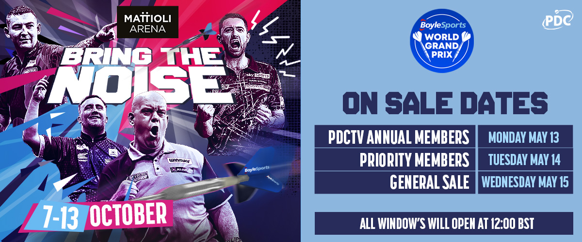 Tickets will go on sale from 1200 BST on Monday May 13, with the first priority window open exclusively for PDCTV Annual Members who had an active Annual Subscription at 1200 BST on Friday May 10. BECOME A PDCTV ANNUAL MEMBER HERE