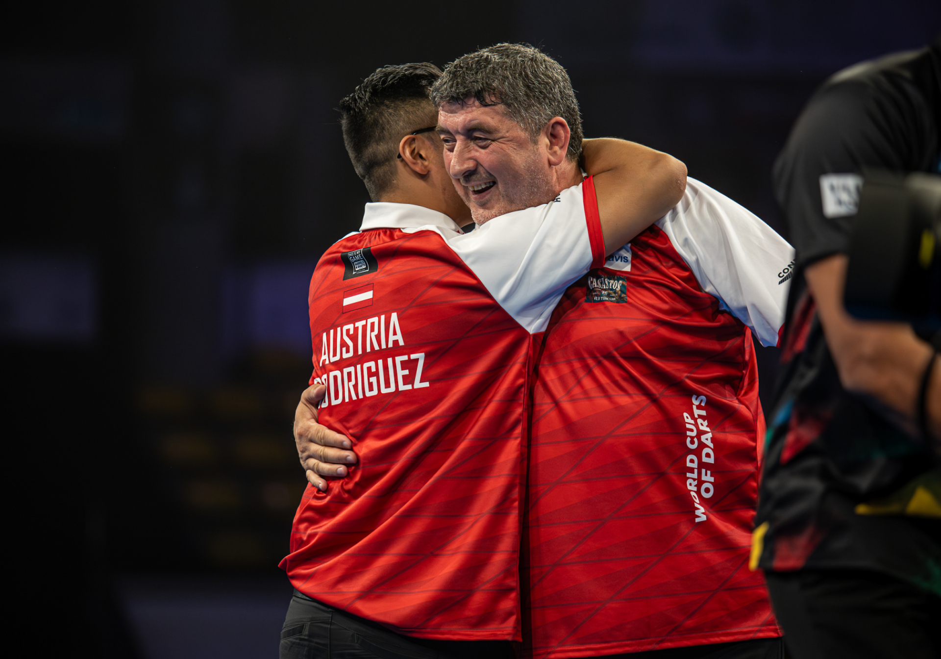 2021 runners-up Austria - led by Rowby-John Rodriguez and Mensur Suljovic - stormed through to round two in resounding style, following up Thursday’s whitewash over China with a 4-1 thrashing of Guyana in Group F.