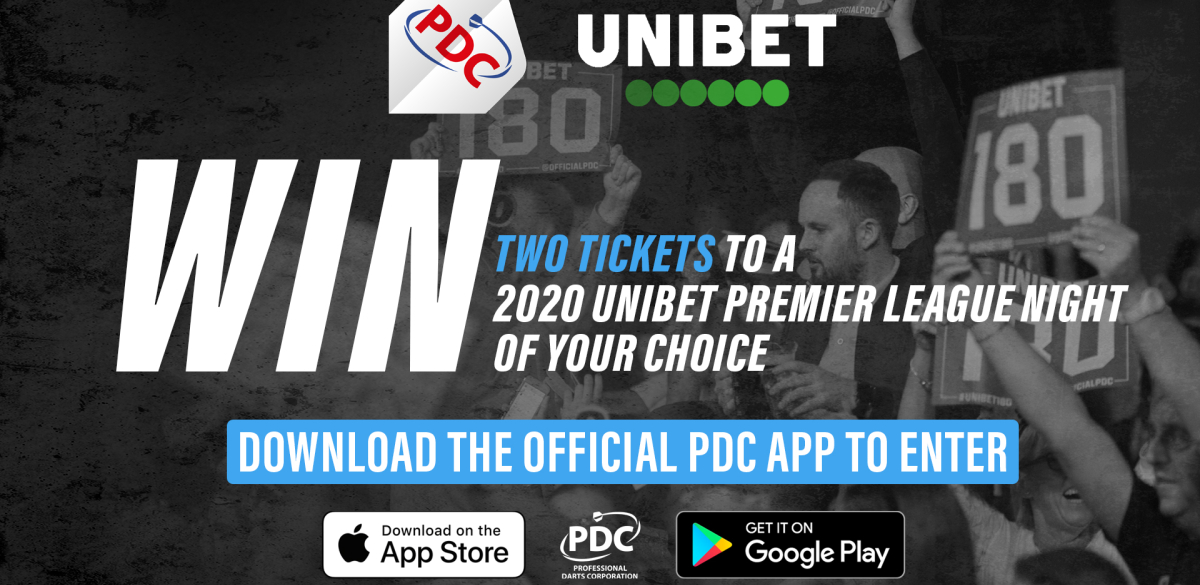 For a chance to win a pair of tickets to a 2020 Unibet Premier League night of your choice, simply follow this link - PDC Give-Away