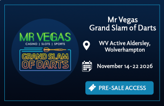 Link to https://www.pdc.tv/paddy-power-world-darts-championship-tickets ㅤ Link to https://www.bahraingp.com/blog/events/bahrain-darts-masters/ ㅤ Link to https://www.pdc.tv/news/2025/09/24/2026-winmau-world-masters-ticket-update ㅤ Link to https://www.pdc.tv/news/2025/10/23/2026-betmgm-premier-league-tickets-general-sale ㅤ Link to https://bit.ly/NZDM2026 ㅤ Link to https://bit.ly/AusDM2026 ㅤ Link to https://bit.ly/NDMTickets26 ㅤ Link to https://bit.ly/US26PreSale ㅤ Link to https://bit.ly/26Matchplay ㅤ ㅤ Link to https://bit.ly/45ux0IJ ㅤ ㅤ Link to https://bit.ly/WGP26 ㅤ Link to https://bit.ly/GrandSlamPreSale26 ㅤㅤ Link to https://www.bigweekends.com/weekends/pdc-darts-finals ㅤ Link to https://www.pdc-europe.tv/tickets/ ㅤ Link to https://www.pdc-europe.tv/tickets/ ㅤ Link to https://www.bigweekends.com/weekends/pdc-darts-finals ㅤ Link to https://www.pdc-europe.tv/tickets/ ㅤ Link to https://www.sportsbreaks.com/Darts?utm_source=PDC&utm_medium=referral&utm_campaign=PDC_ticket_page_button_Jan24 ㅤ Link to /TandCs General Ticket Info & T&Cs