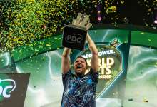 Van Gerwen was unable to cap off a superb campaign by reclaiming the sport’s biggest prize, six years on from his last victory at Alexandra Palace.